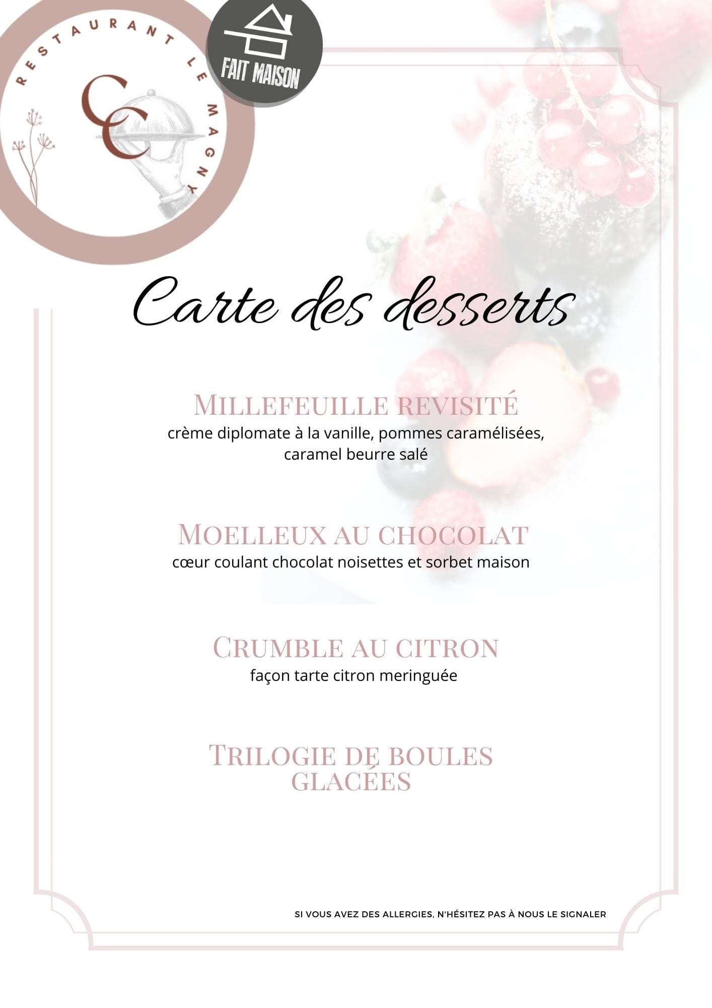 Notre menu sera disponible uniquement le dimanche 17 avril 2022 et le lundi 18 avril 2022, ça sera d’ailleurs le seul menu durant ces 2 jours.